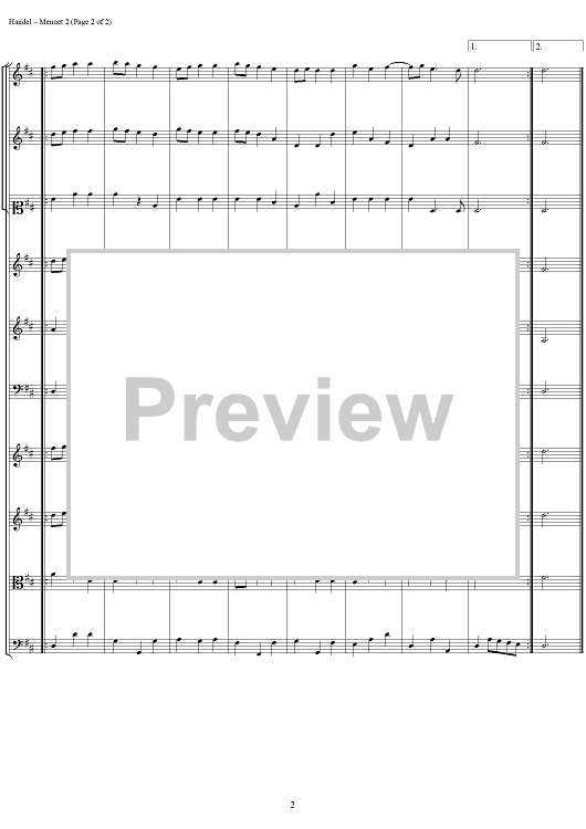 Digital Sheet Music for Music for the Royal Fireworks, No. 6: Minuet 2 - Score by George Frideric Handel scored for Chamber Orchestra; id:267295