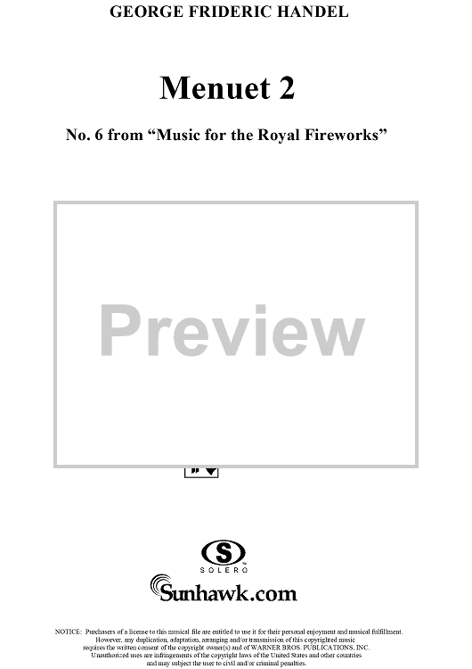 "Music for the Royal Fireworks, No. 6: Minuet 2 - Score" Sheet Music by George Frideric Handel