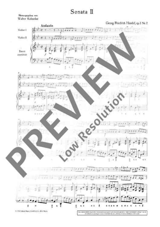 Digital Sheet Music for Nine Trio Sonatas in G minor by George Frideric Handel scored for 2 Violins And Basso Continuo; Cello Ad Libitum; id:473084