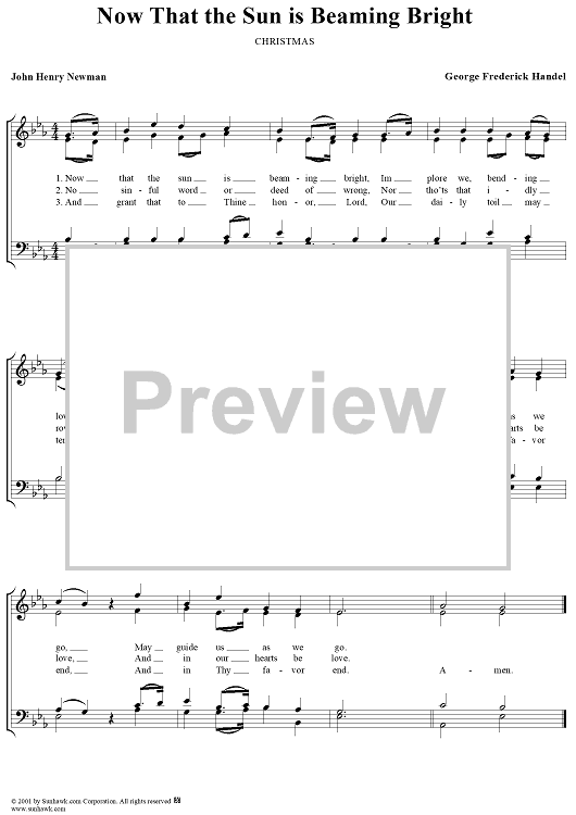 Digital Sheet Music for Now That the Sun is Beaming Bright by George Frideric Handel, John Henry Newman scored for Four-part Mixed Chorus; id:273541