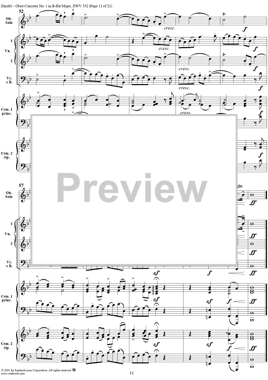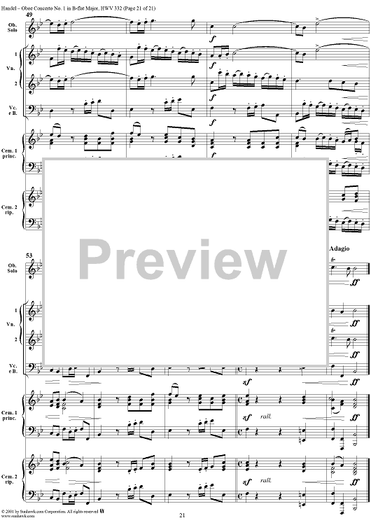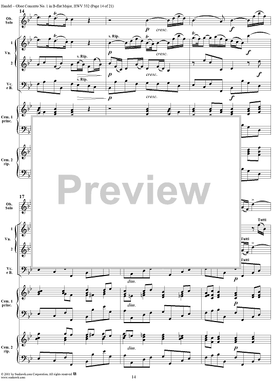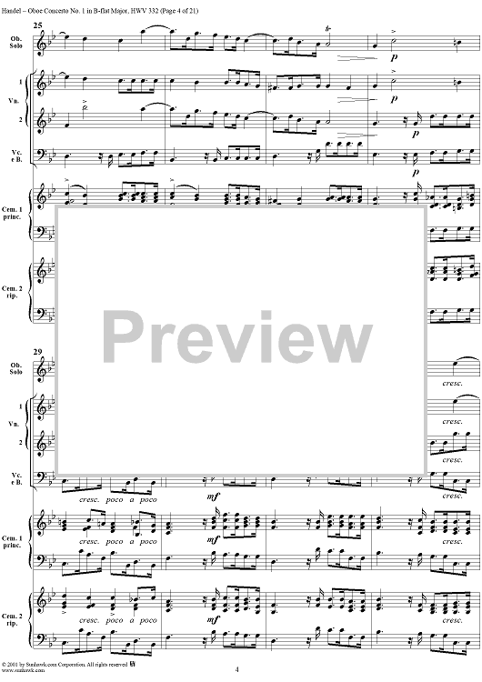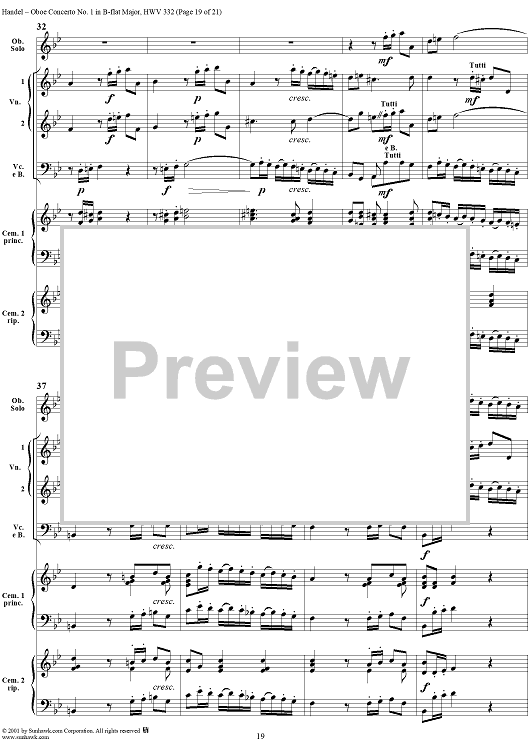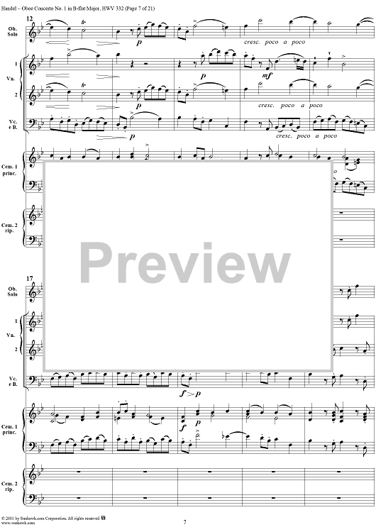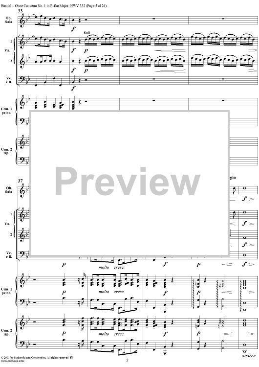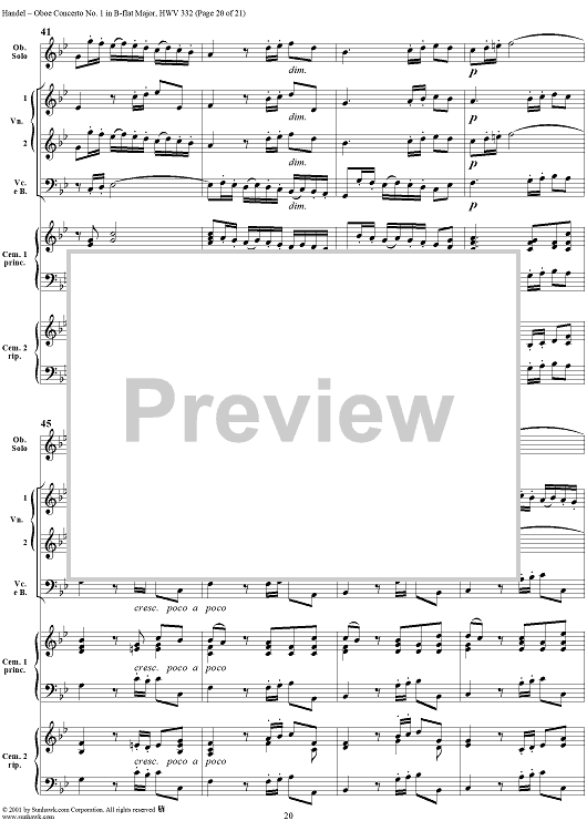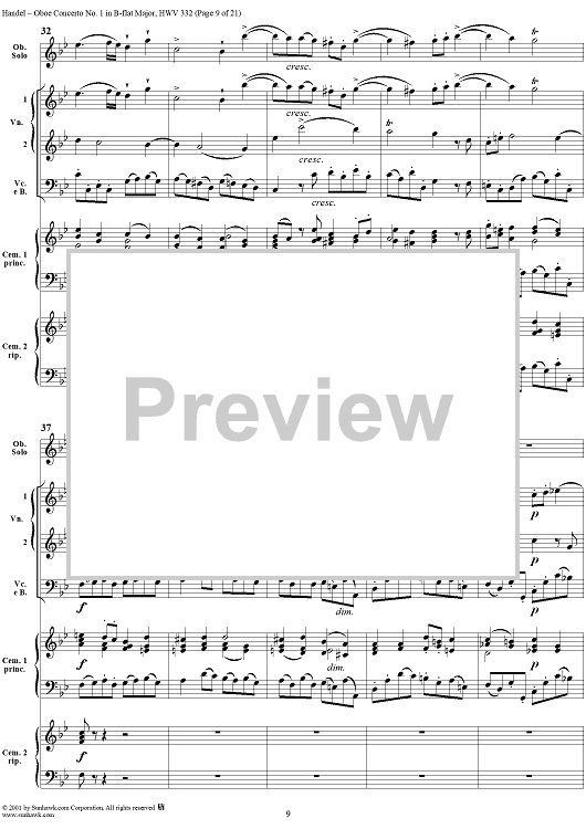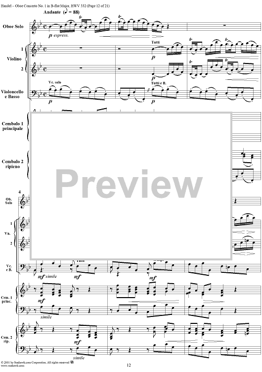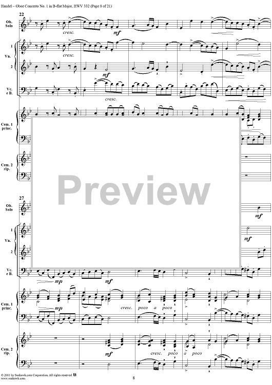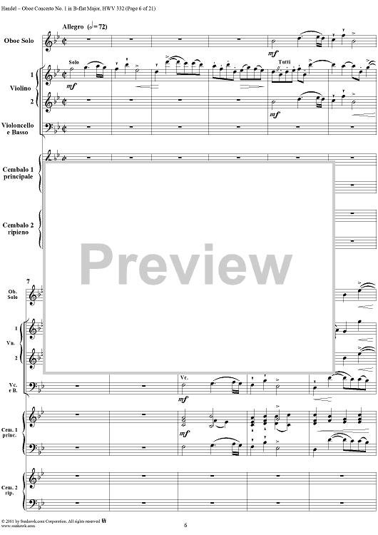 Digital Sheet Music for Oboe Concerto No. 1 in B-flat Major HWV332 - Full Score by George Frideric Handel scored for Orchestra; id:267271