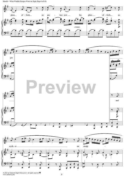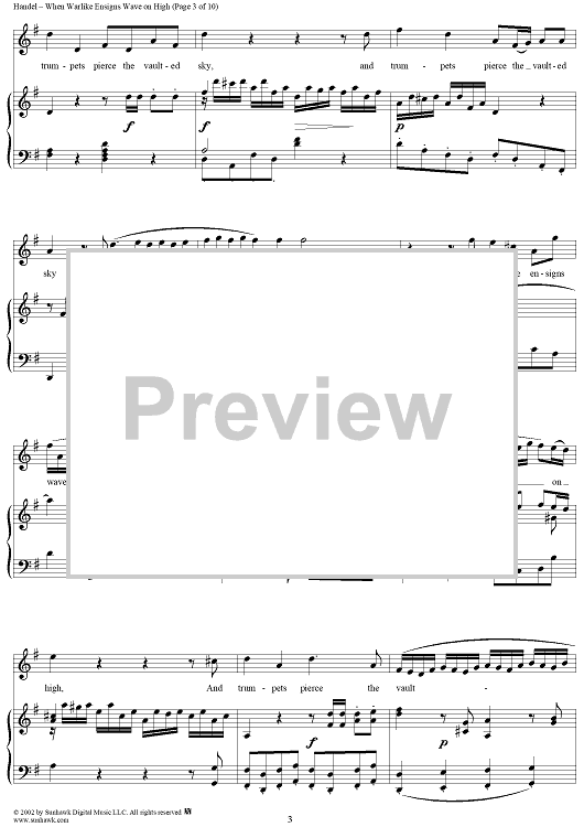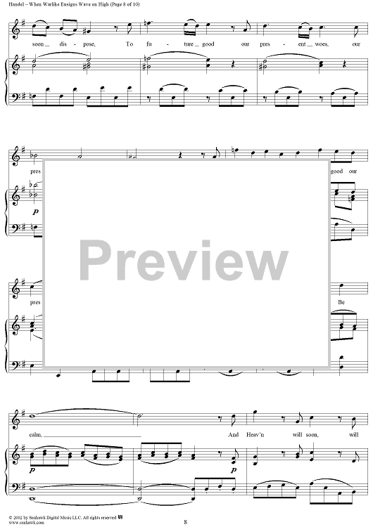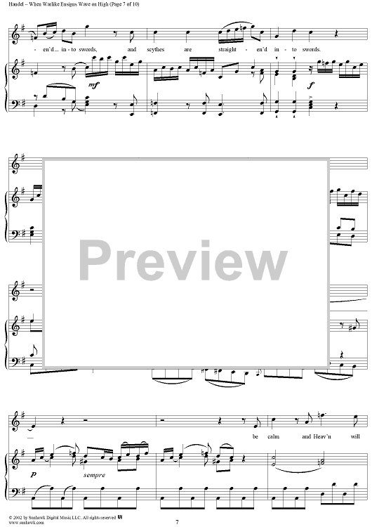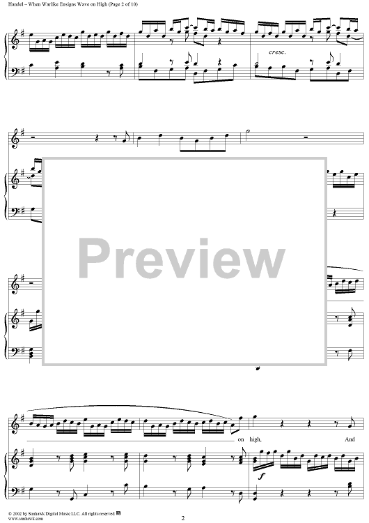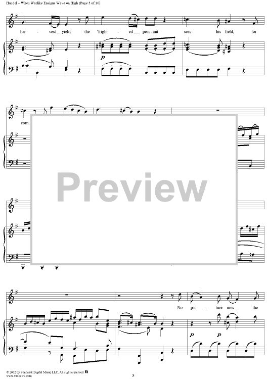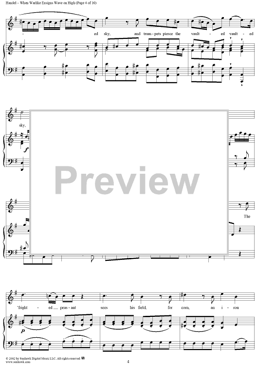 Digital Sheet Music for Occasional Oratorio, "When war-like ensigns wave on high" by George Frideric Handel scored for Voice/Piano; id:260360