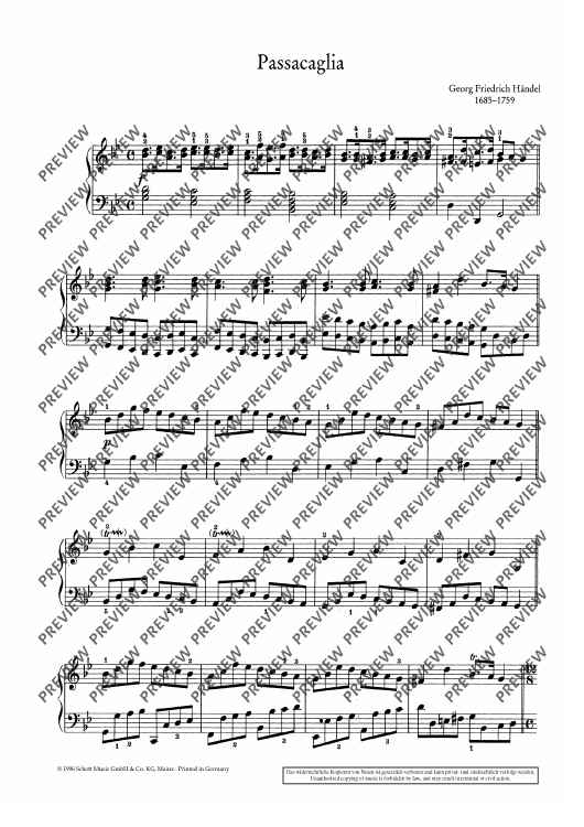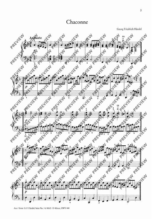 Digital Sheet Music for Passacaglia G minor / Chaconne D minor by George Frideric Handel scored for Piano; id:475056