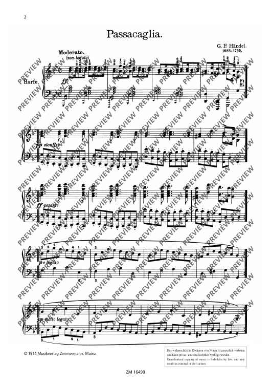 Digital Sheet Music for Passacaglia by George Frideric Handel, Luigi Magistretti scored for Harp; id:496441