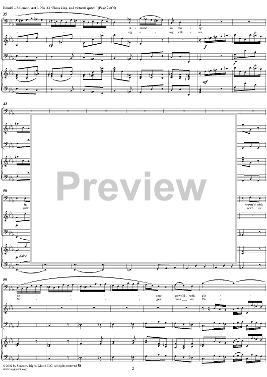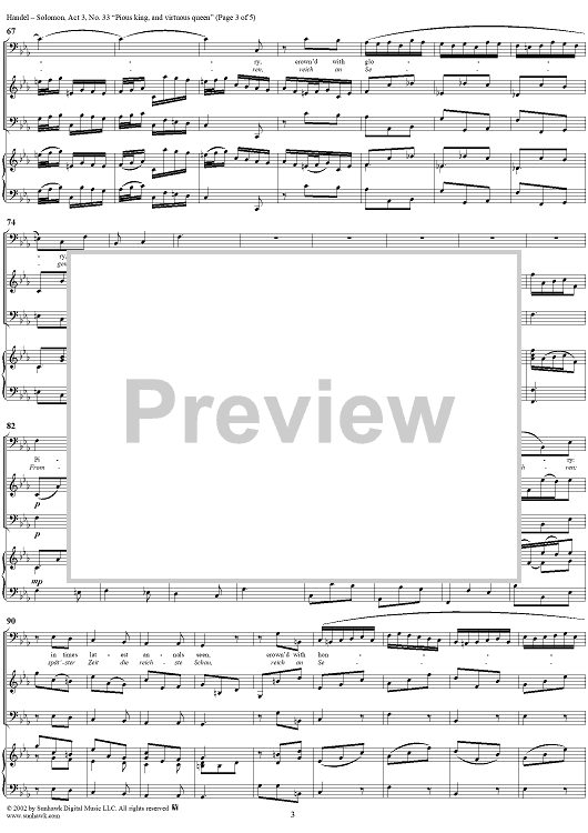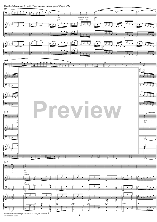 Digital Sheet Music for Pious king, and virtuous queen, No. 33 from Oratorio "Solomon", Act 3 (HWV67) by George Frideric Handel scored for Soli/SATB/Orchestra; id:290421