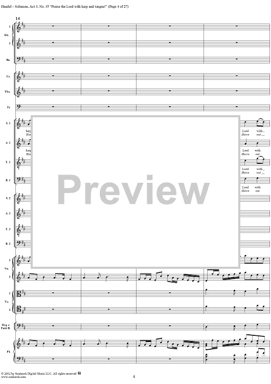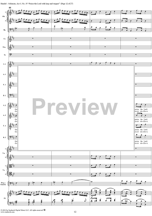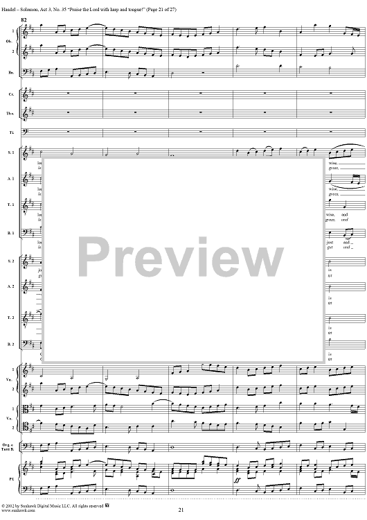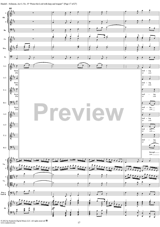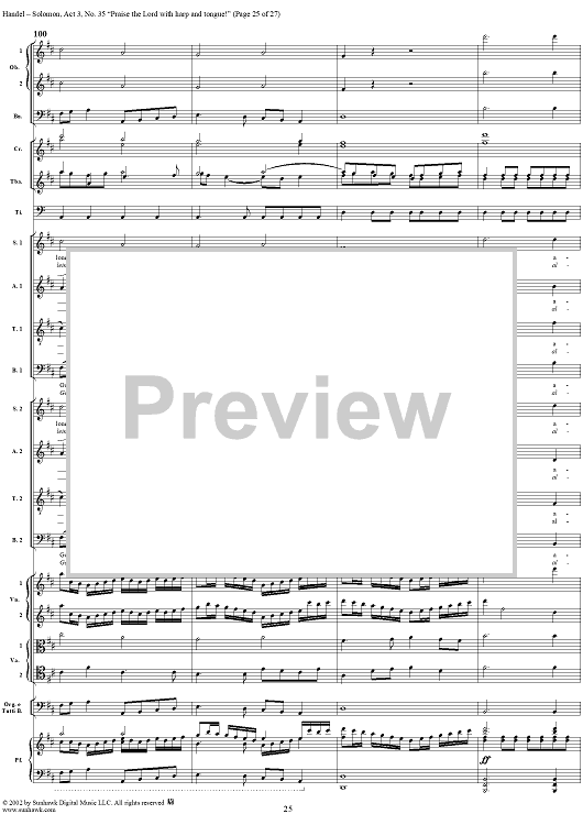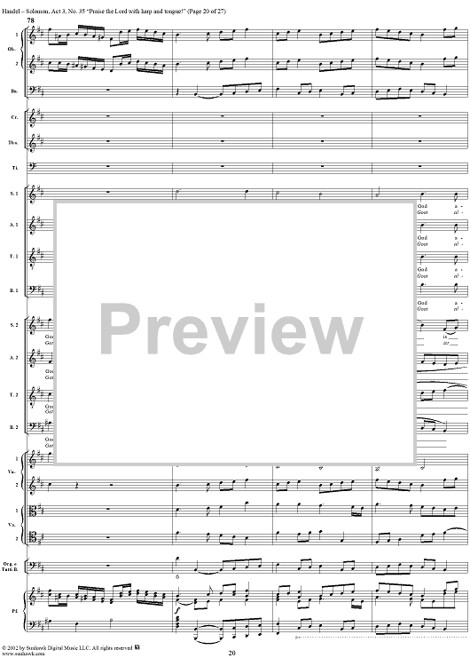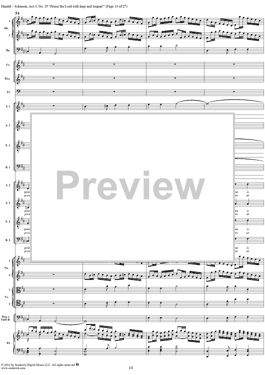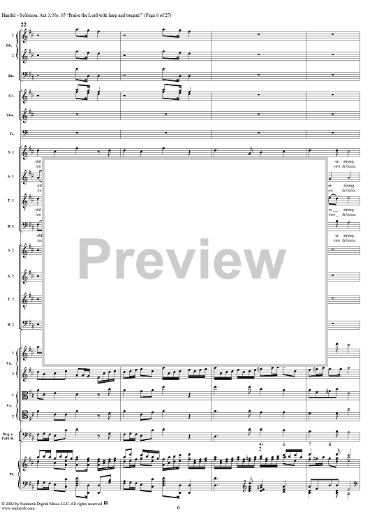 Digital Sheet Music for Praise the Lord with harp and tongue!, No. 35 from Oratorio "Solomon", Act 3 (HWV67) by George Frideric Handel scored for Soli/SATB/Orchestra; id:290423