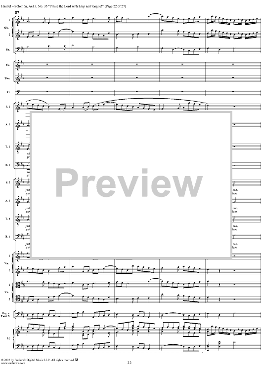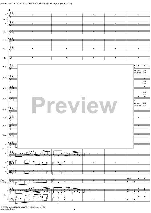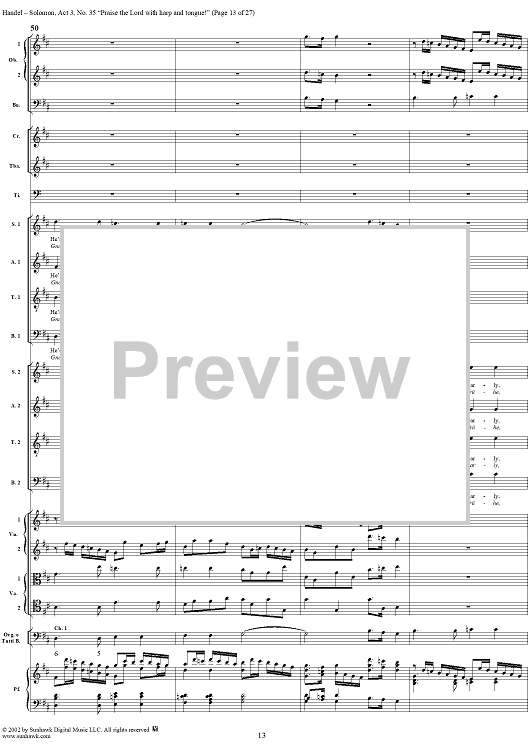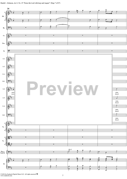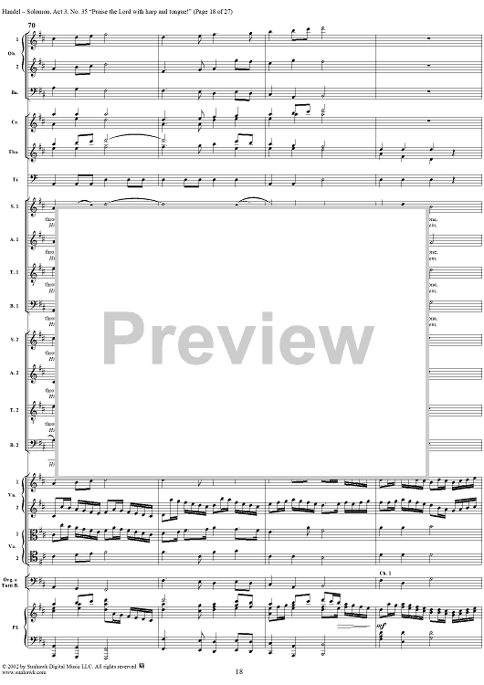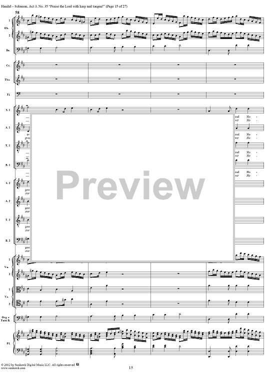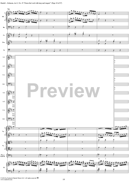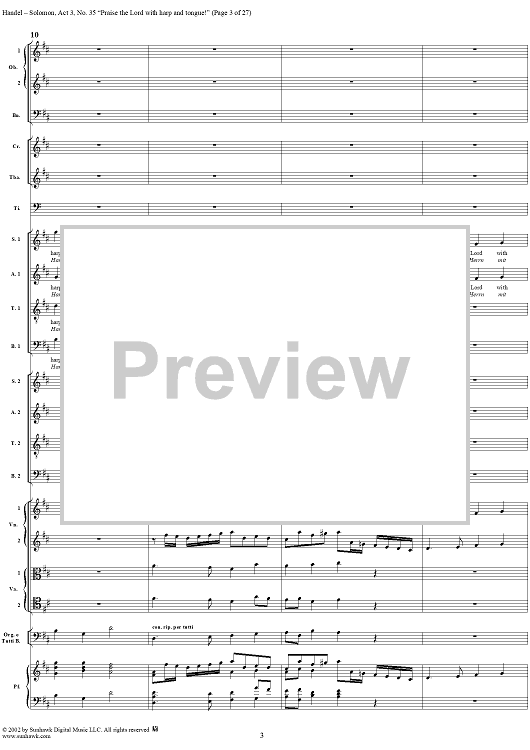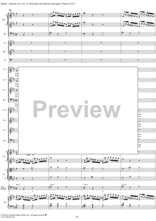 Digital Sheet Music for Praise the Lord with harp and tongue!, No. 35 from Oratorio "Solomon", Act 3 (HWV67) by George Frideric Handel scored for Soli/SATB/Orchestra; id:290423