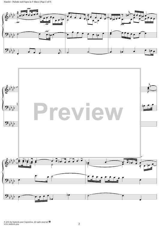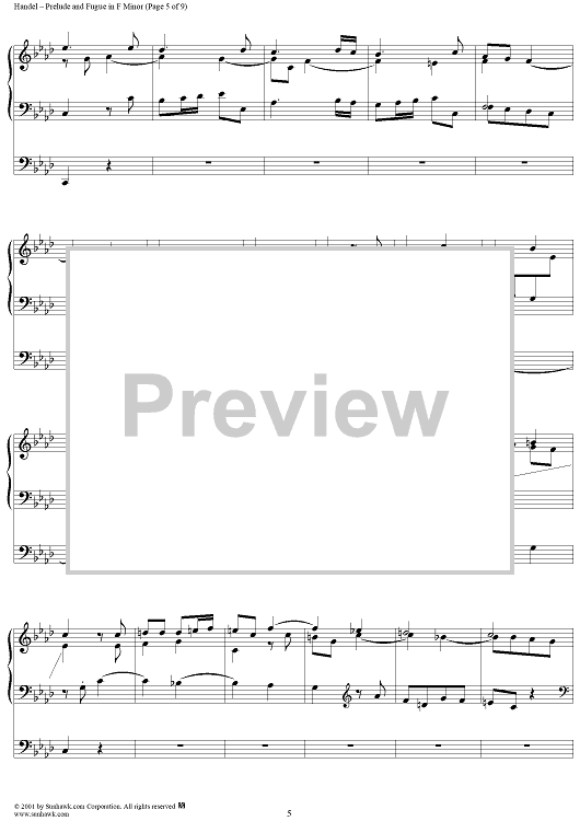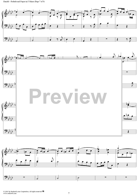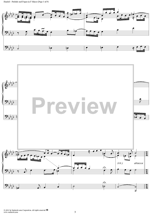 Digital Sheet Music for Prelude and Fugue in F Minor by George Frideric Handel scored for Organ Solo; id:266605