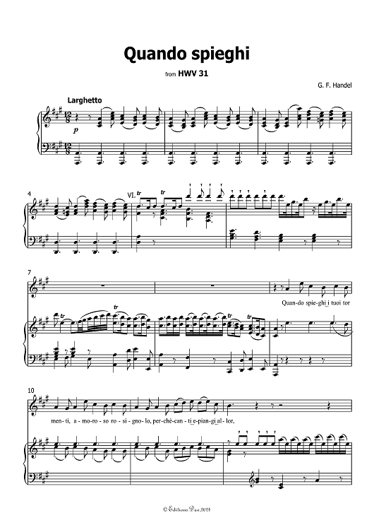 "Quando spieghi" from HWV 31 in A Major, for Voice and Piano