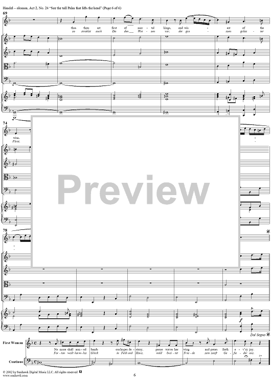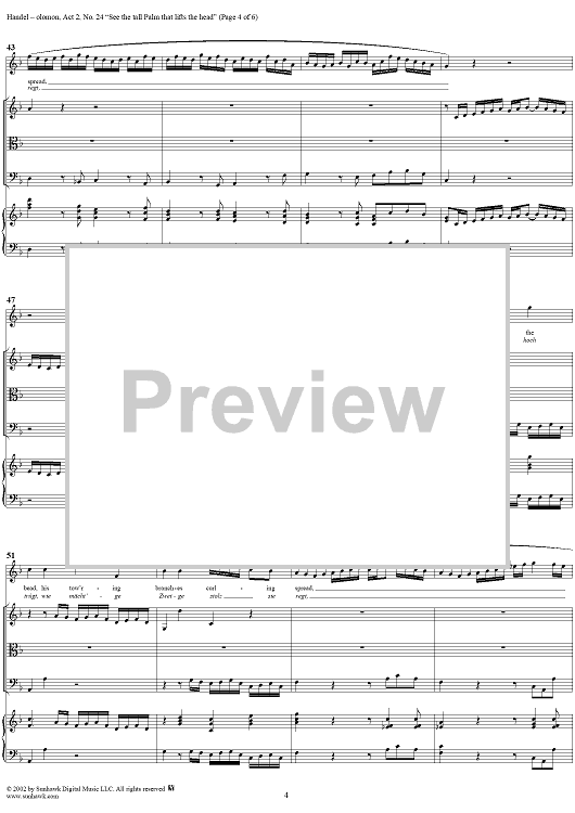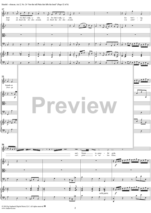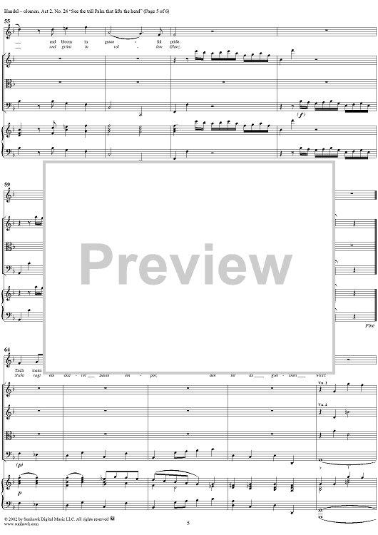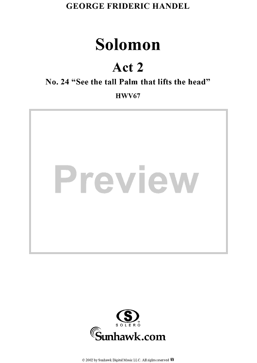 Digital Sheet Music for See the tall Palm that lifts the head, No. 24 from Oratorio "Solomon", Act 2 (HWV67) by George Frideric Handel scored for Soli/SATB/Orchestra; id:290396