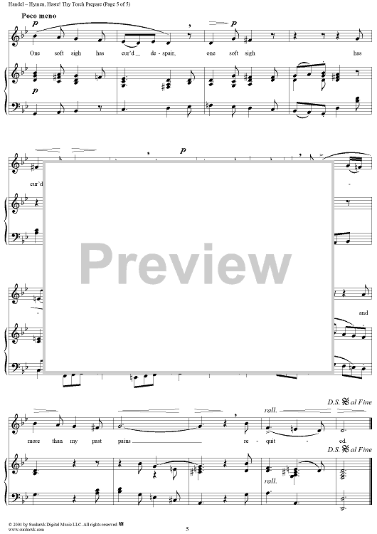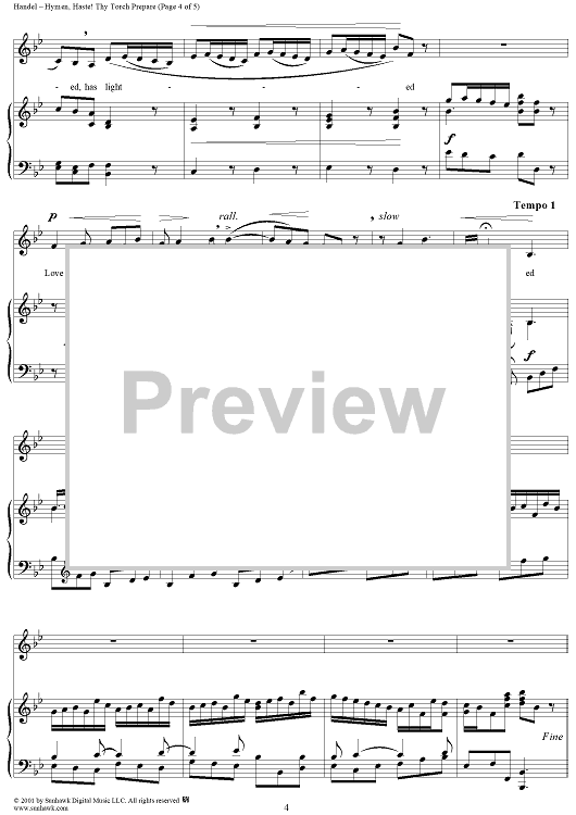 Digital Sheet Music for Semele Oratorio, Act 1, no.7: Hymen, Haste! Thy Torch Prepare, Air by George Frideric Handel scored for Voice/Piano; id:266262