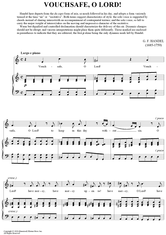 "Vouchsafe, O Lord!" Sheet Music by George Frideric Handel