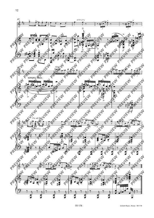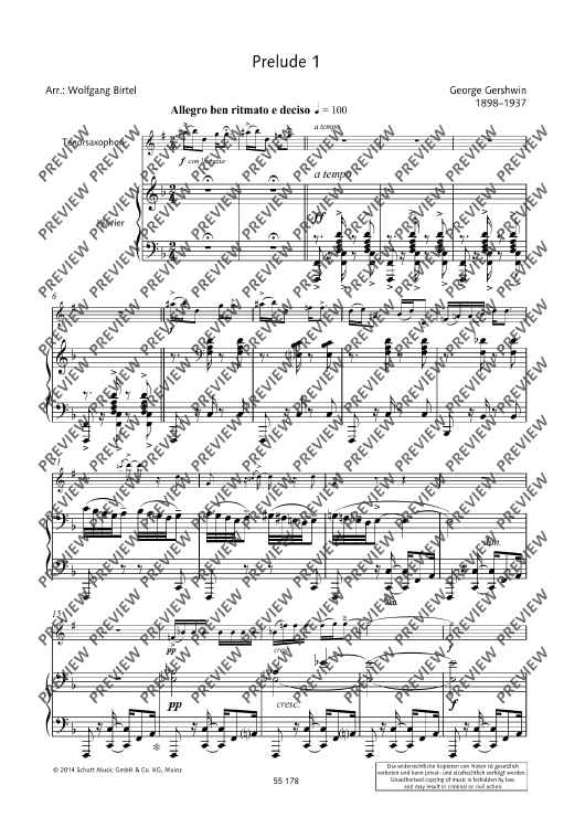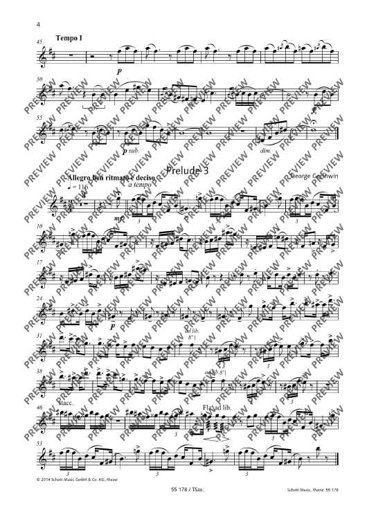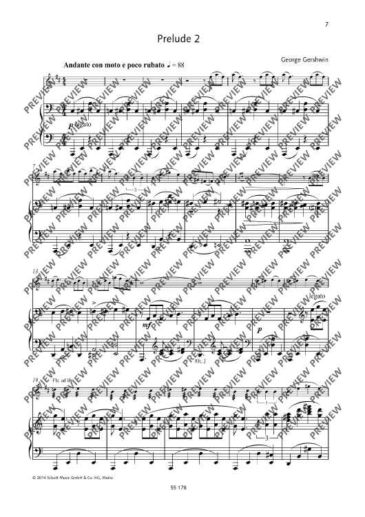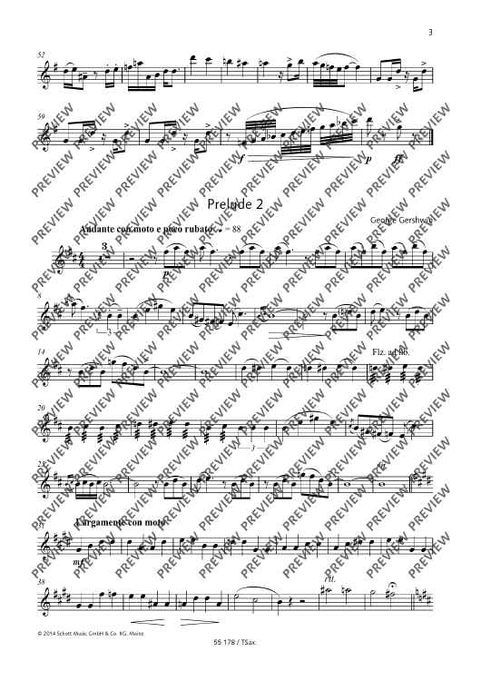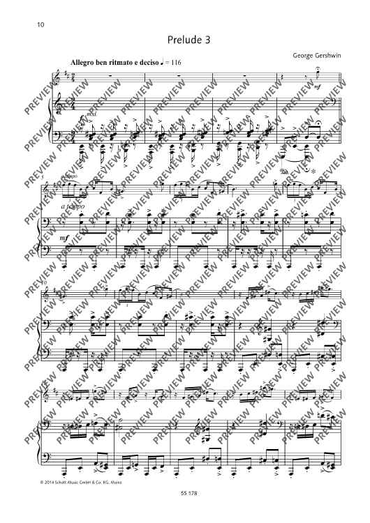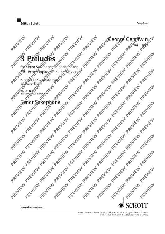 The melodies from George Gershwin's (1898-1937) musicals, from 'Porgy and Bess', from orchestral pieces like 'Rhapsody in Blue' or 'An American in Paris', we all know them! But the career of the young musician started as a pianist in a music publishing house where he was to encourage customers to buy music by playing it. Soon he began to compose music himself and caught the attention of the Broadway, which paved the way to his international career. Inspired by Frédéric Chopin's 24 Préludes, he began to write his own 'Preludes' for the piano in the mid-1920s: Of the five preludes composed by him, he used two for the violin composition 'Short Story' and presented the other three at a concert on 4 December 1926. These 'Preludes' combine classical moments and jazz elements into an effective whole and can be played individually or as a little jazz sonata (fast – slow – fast). Thanks to the present arrangement, the charming miniatures are now available in a version for solo instrument and piano accompaniment.