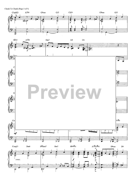 Digital Sheet Music for Cheek To Cheek by George Gershwin, Brent Edstrom scored for Piano Solo; id:466004