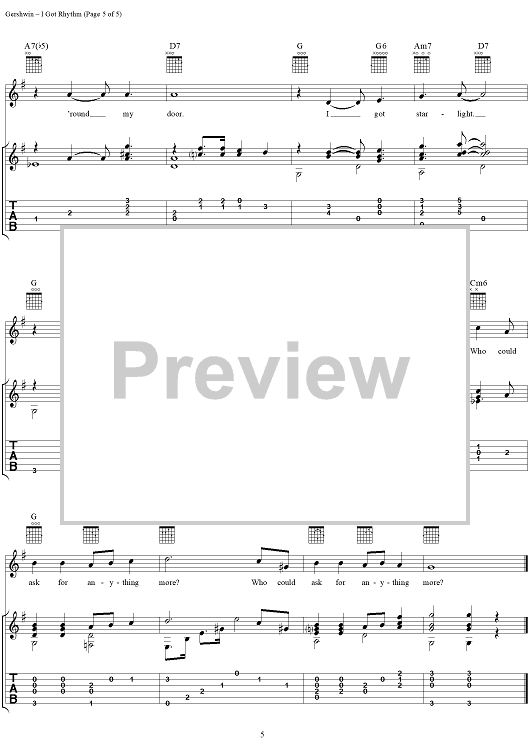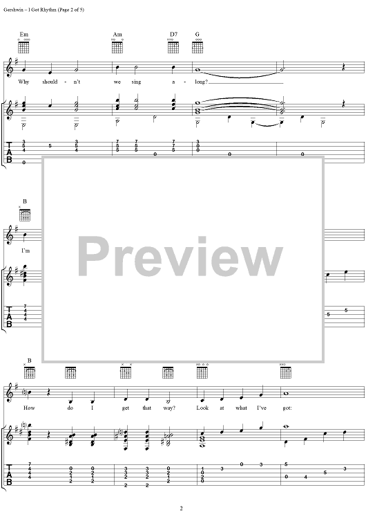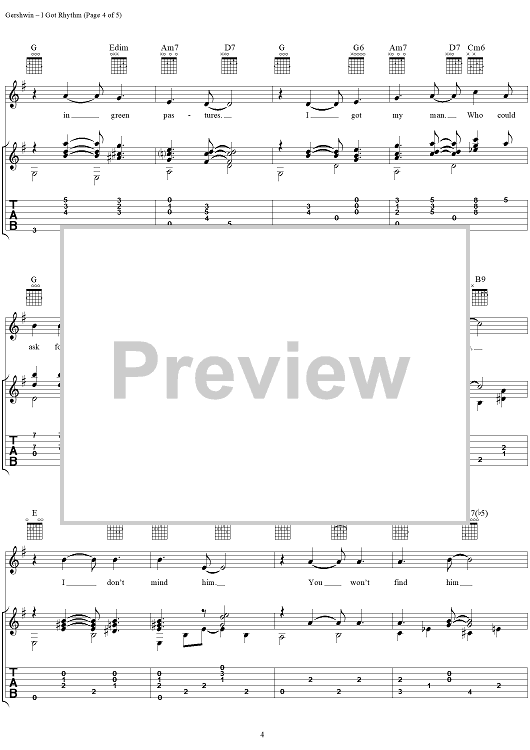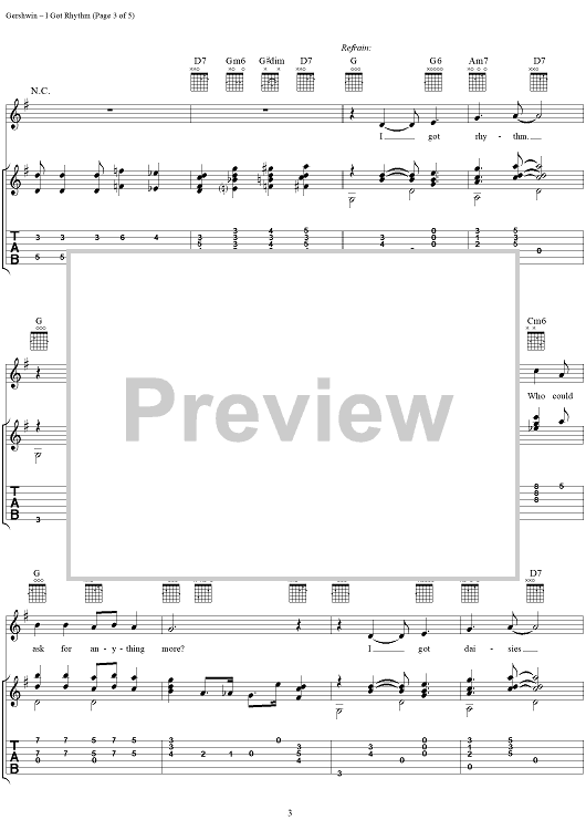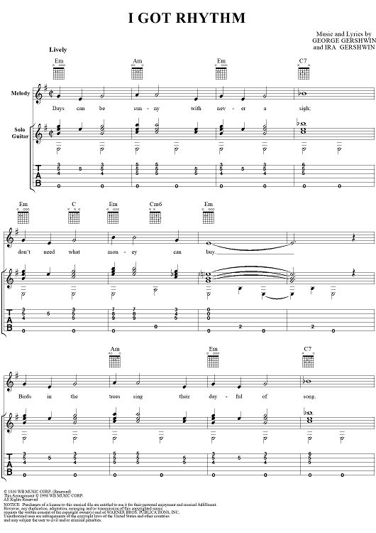 Digital Sheet Music for I Got Rhythm by George Gershwin, Jerry Silverman scored for Guitar Tab/Vocal; id:268867