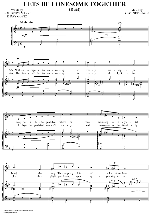 "Lets Be Lonesome Together (Duet)" Sheet Music by George Gershwin