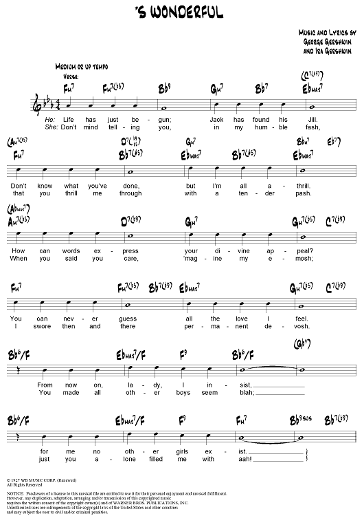 Digital Sheet Music for 'S Wonderful by Gene Kelly, George Gershwin, Ira Gershwin scored for Lead Sheet; id:312503