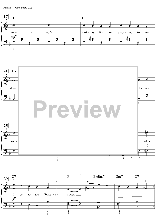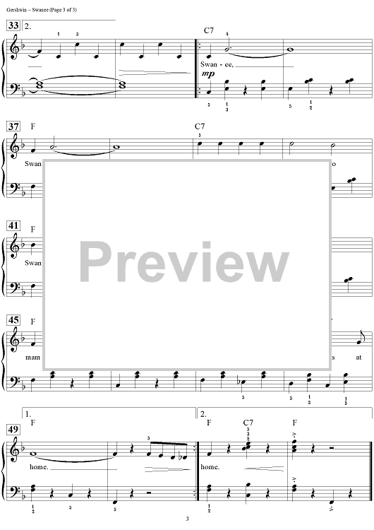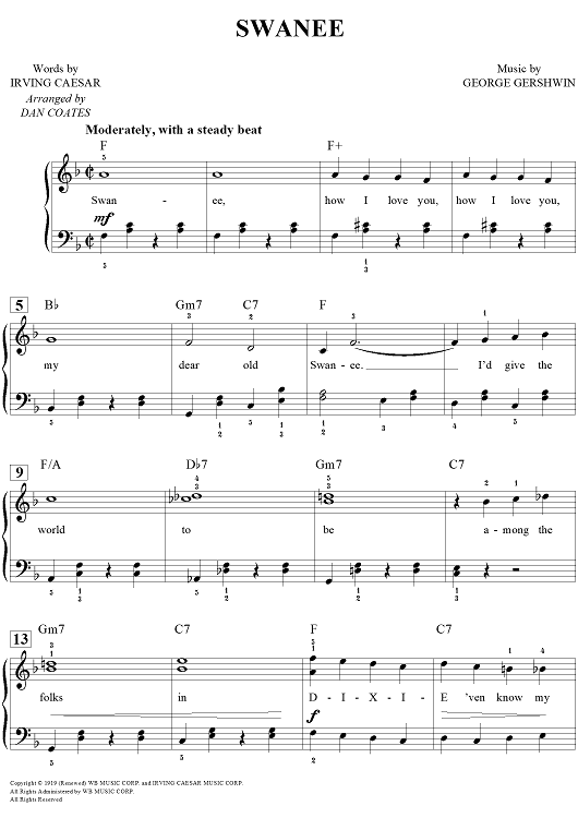 Digital Sheet Music for Swanee by Dan Coates, George Gershwin, Irving Caesar scored for Easy Piano/Vocal/Chords; id:457311