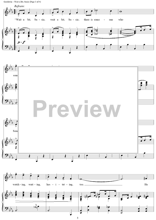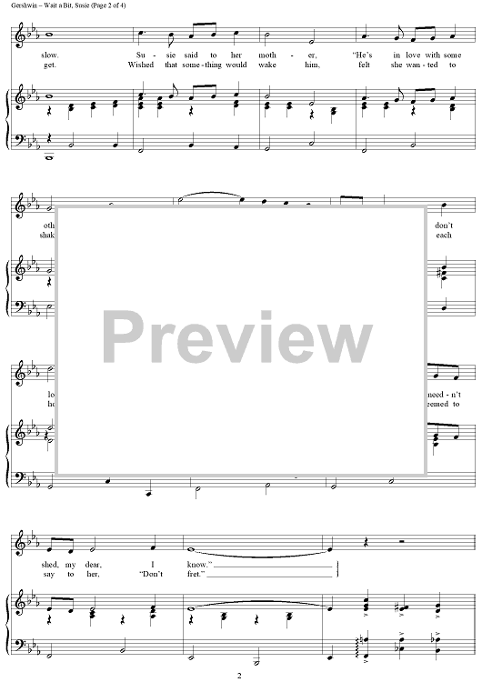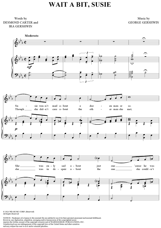 Digital Sheet Music for Wait A Bit, Susie by George Gershwin, Ira Gershwin, Desmond Carter scored for Piano/Vocal/Chords; id:312655