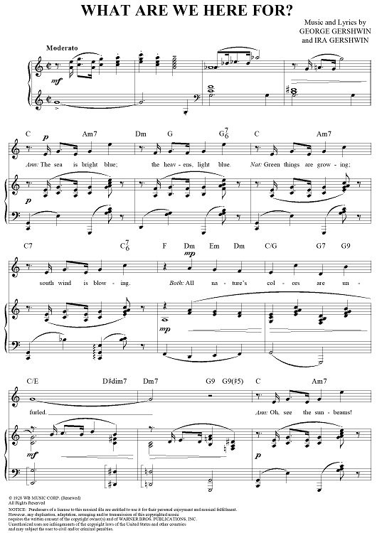 Digital Sheet Music for What Are We Here For? by George Gershwin, Ira Gershwin scored for Piano/Vocal/Chords; id:313283