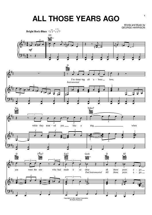 Digital Sheet Music for All Those Years Ago by George Harrison scored for Piano/Vocal/Chords; id:367993