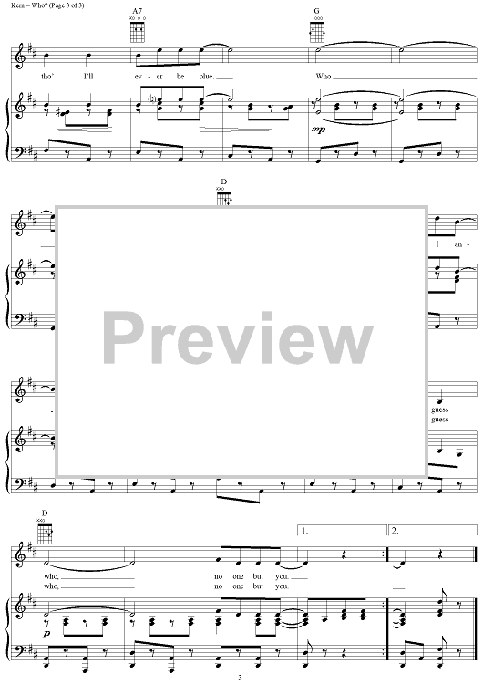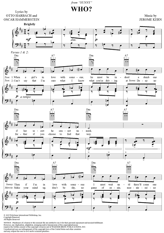 Digital Sheet Music for Who? by Jerome Kern, Oscar Hammerstein II, Otto Harbach, George Olsen scored for Piano/Vocal/Chords; id:286515