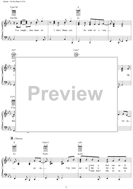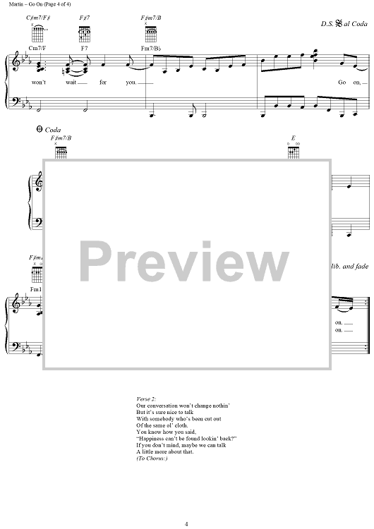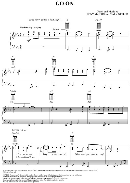 Digital Sheet Music for Go On by George Strait, Tony Martin, Mark Nesler scored for Piano/Vocal/Chords; id:286249