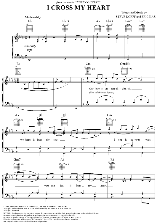 Digital Sheet Music for I Cross My Heart by George Strait, Steve Dorff, Eric Kaz scored for Piano/Vocal/Chords; id:271095