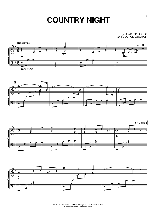 Digital Sheet Music for Country Night by Charles Gross, George Winston scored for Piano; id:381649