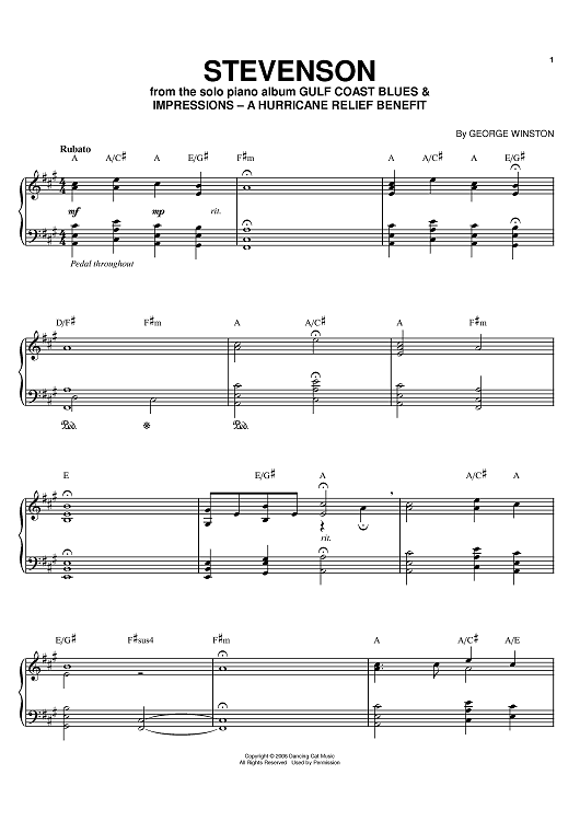 Digital Sheet Music for Stevenson by George Winston scored for Piano; id:399113