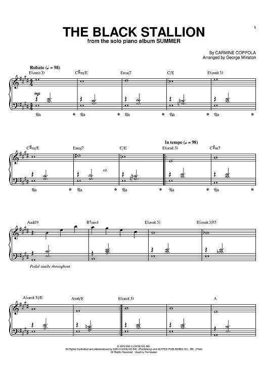Digital Sheet Music for The Black Stallion by Carmine Coppola, George Winston scored for Piano; id:399111