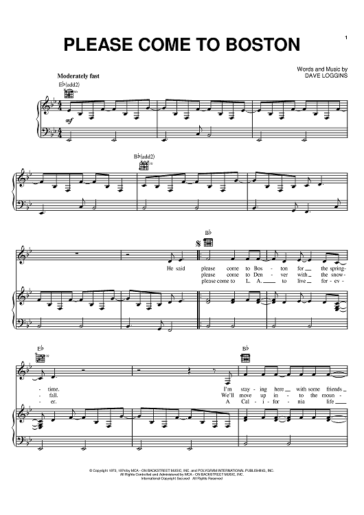 Digital Sheet Music for Please Come To Boston by Glen Campbell, Dave Loggins scored for Piano/Vocal/Chords; id:392528