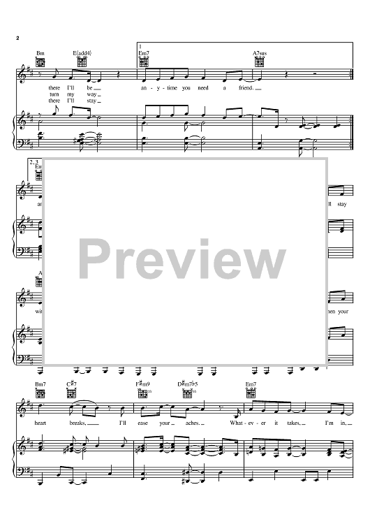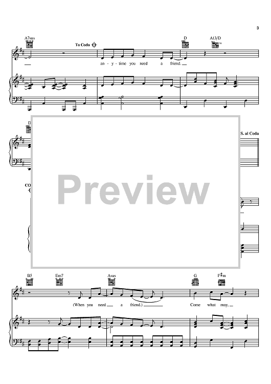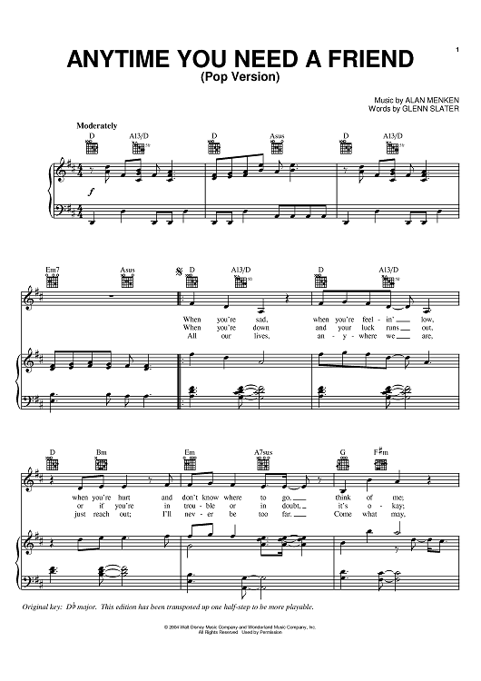 Digital Sheet Music for Anytime You Need A Friend (Pop Version) by Alan Menken, The Beu Sisters, Glenn Slater scored for Piano/Vocal/Chords; id:374538