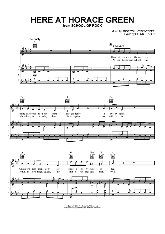 Digital Sheet Music for Here At Horace Green by Andrew Lloyd Webber, Glenn Slater scored for Piano/Vocal/Chords; id:457946