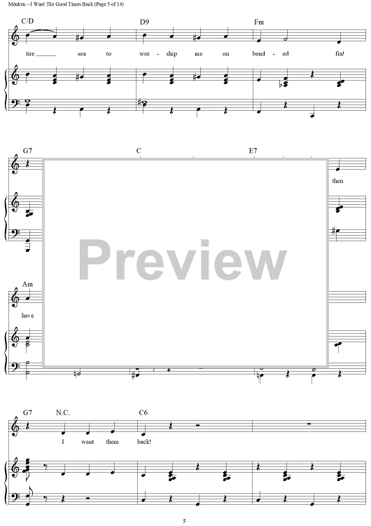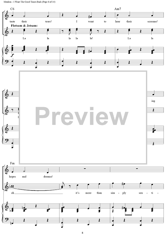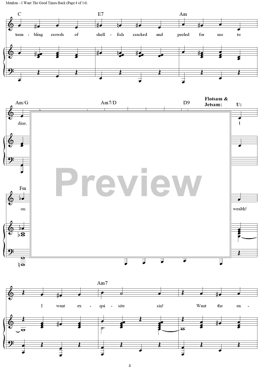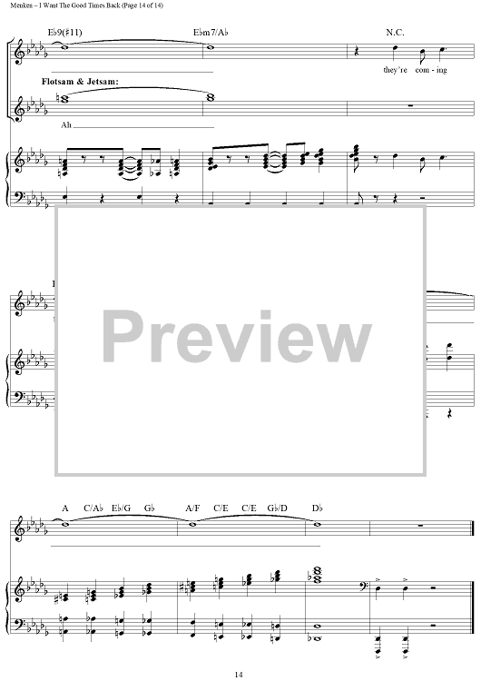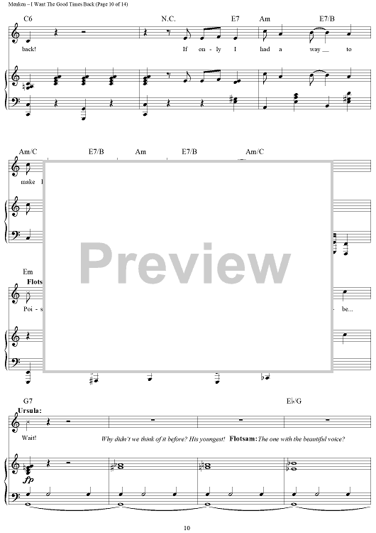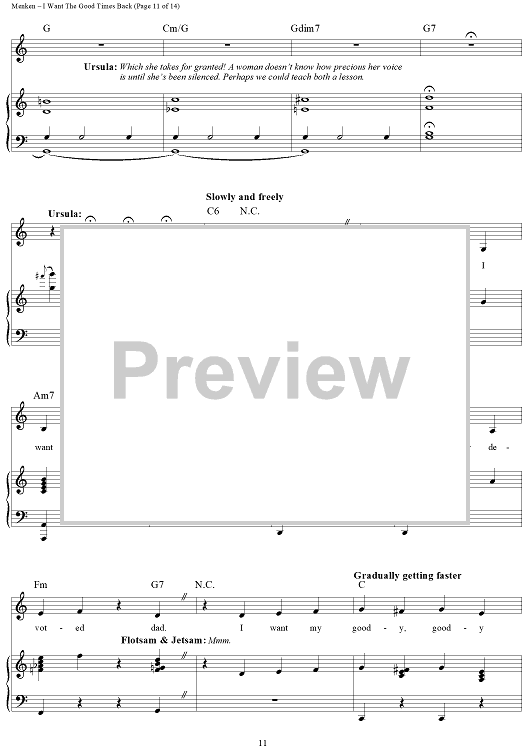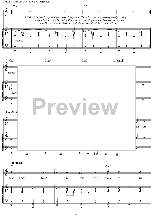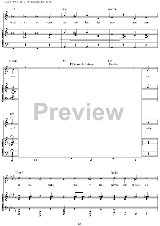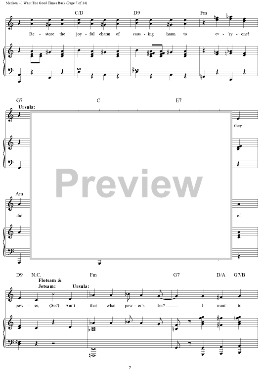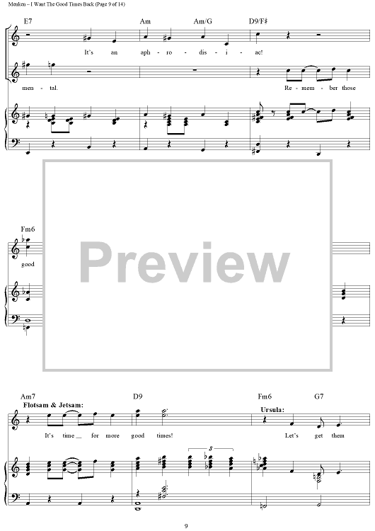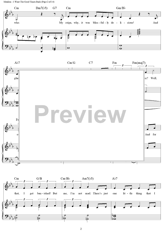 Digital Sheet Music for I Want The Good Times Back by Alan Menken, Glenn Slater scored for Piano/Vocal/Chords; id:463320