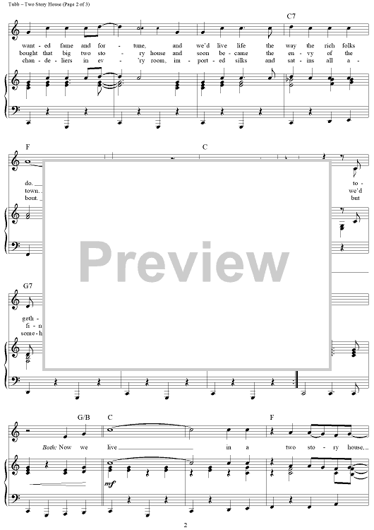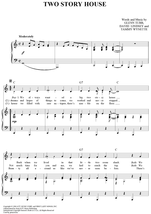 Digital Sheet Music for Two Story House by Tammy Wynette, George Jones, Glenn Tubb, David Lindsey scored for Piano/Vocal/Chords; id:362778