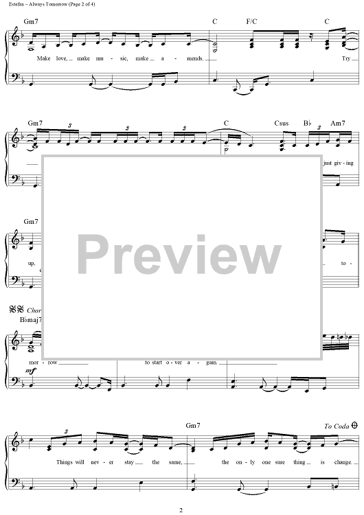 Digital Sheet Music for Always Tomorrow by Gloria Estefan scored for Piano/Vocal/Chords; id:289570