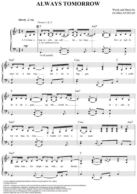 "Always Tomorrow" Sheet Music by Gloria Estefan