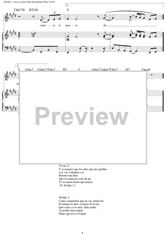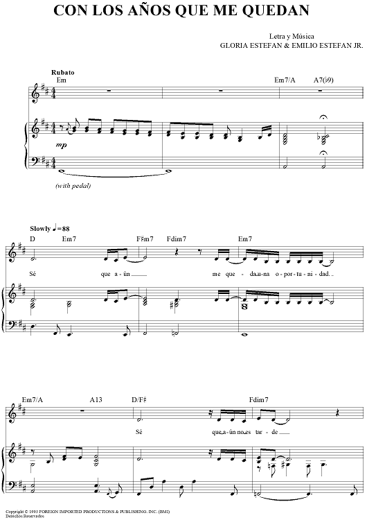 Digital Sheet Music for Con Los Años Que Me Quedan by Gloria Estefan, Emilio Estefan Jr. scored for Piano/Vocal/Chords; id:441292