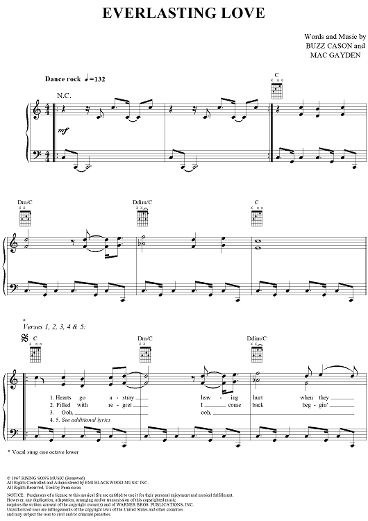 Digital Sheet Music for Everlasting Love by Gloria Estefan, Buzz Cazon, Mac Gayden scored for Piano/Vocal/Chords; id:283430