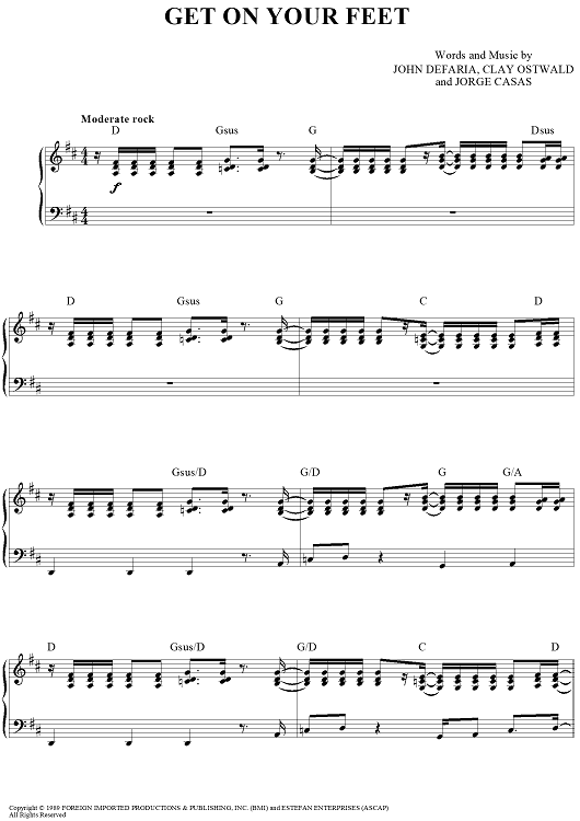 Digital Sheet Music for Get On Your Feet by Gloria Estefan, Jorge Casas, Miami Sound Machine, Clay Ostwald scored for Piano/Vocal/Chords; id:453411