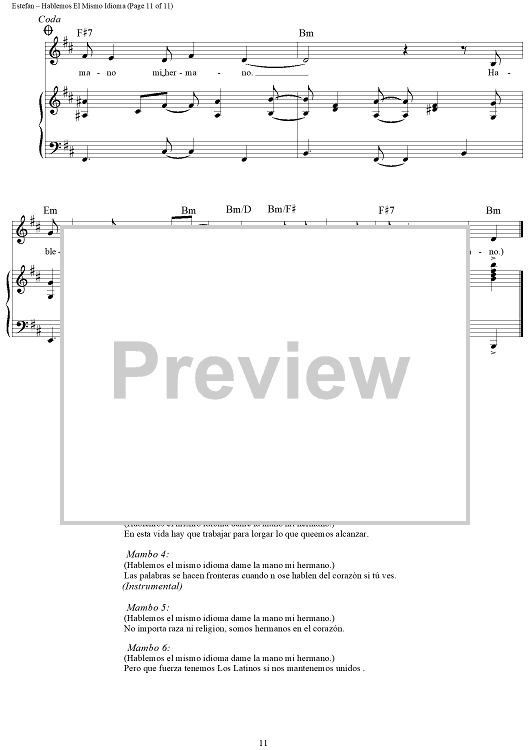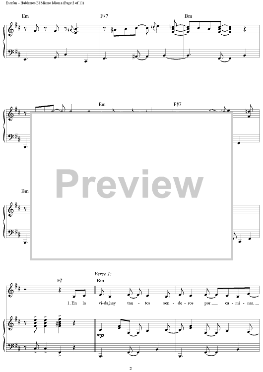 Digital Sheet Music for Hablemos El Mismo Idioma by Gloria Estefan, Emilio Estefan Jr. scored for Piano/Vocal/Chords; id:441294