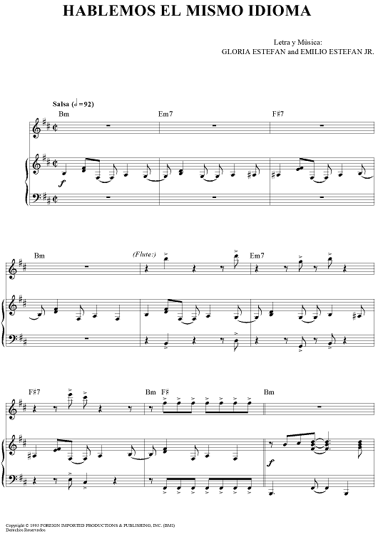"Hablemos El Mismo Idioma" Sheet Music by Gloria Estefan