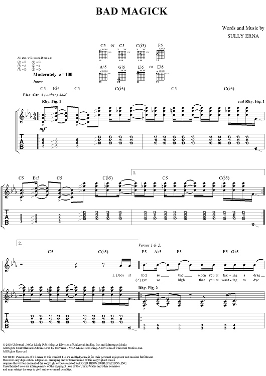 Digital Sheet Music for Bad Magick by Godsmack scored for Guitar Tab/Vocal; id:285253