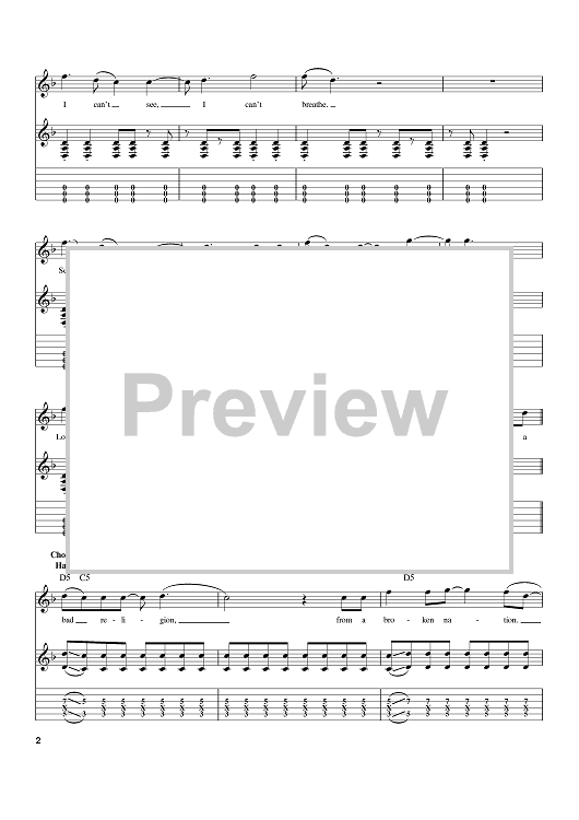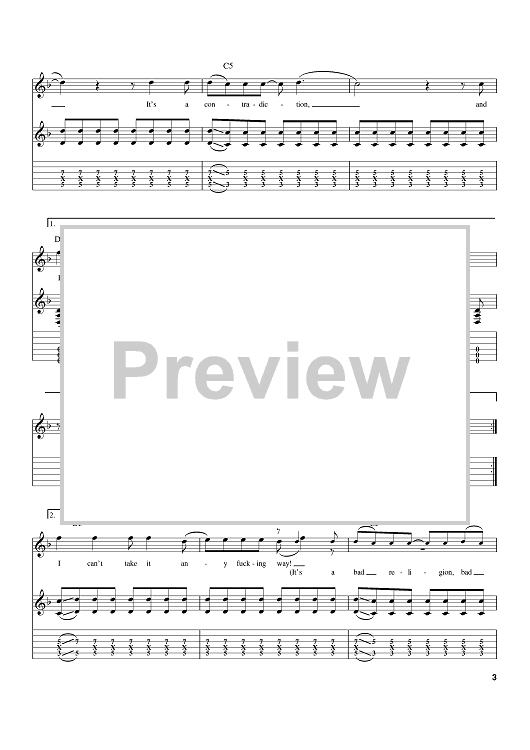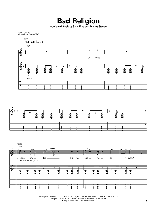 Digital Sheet Music for Bad Religion by Godsmack, Tommy Stewart scored for Guitar Tab; id:389461