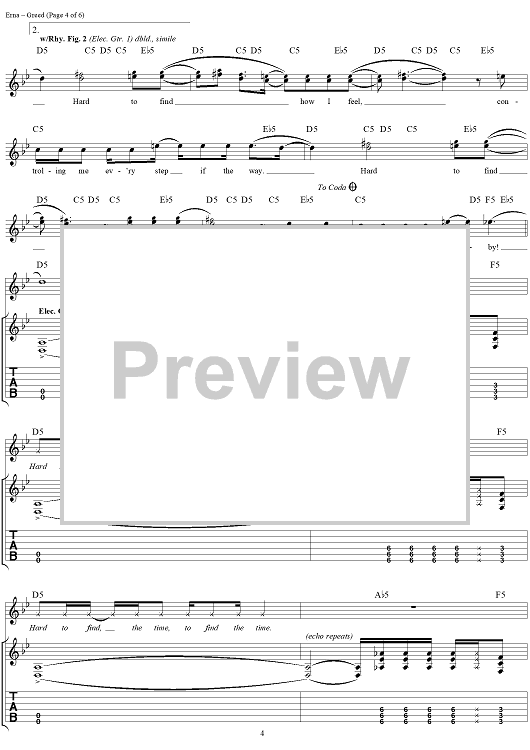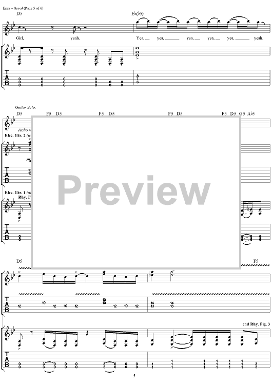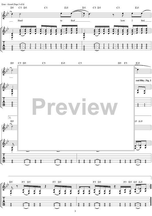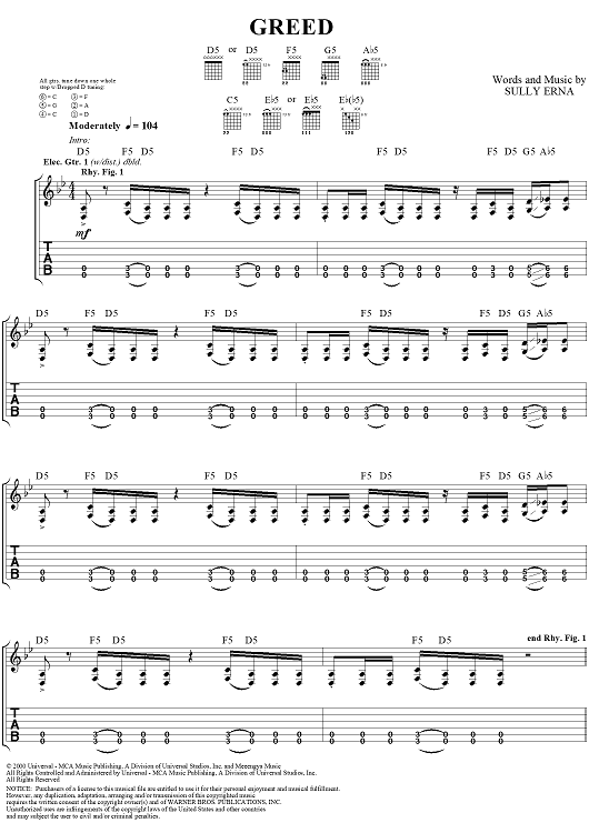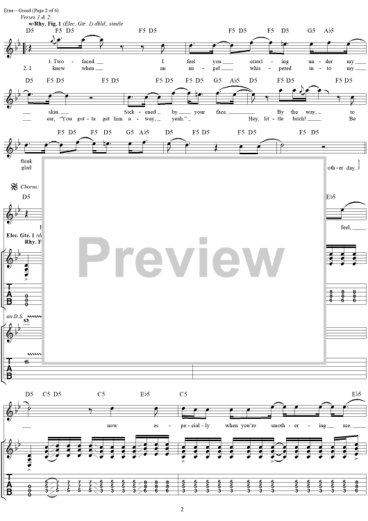 Digital Sheet Music for Greed by Godsmack scored for Guitar Tab/Vocal; id:285252
