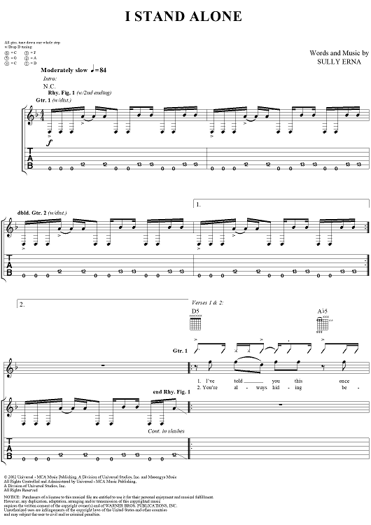 Digital Sheet Music for I Stand Alone by Godsmack scored for Guitar Tab/Vocal; id:295381