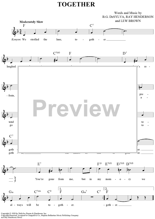 Digital Sheet Music for Together by Ray Henderson, Lew Brown, Buddy DeSylva scored for Lead Sheet; id:444402