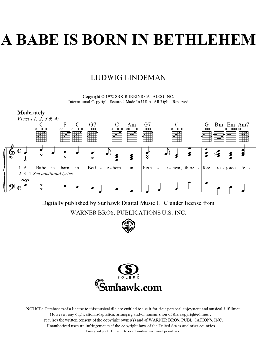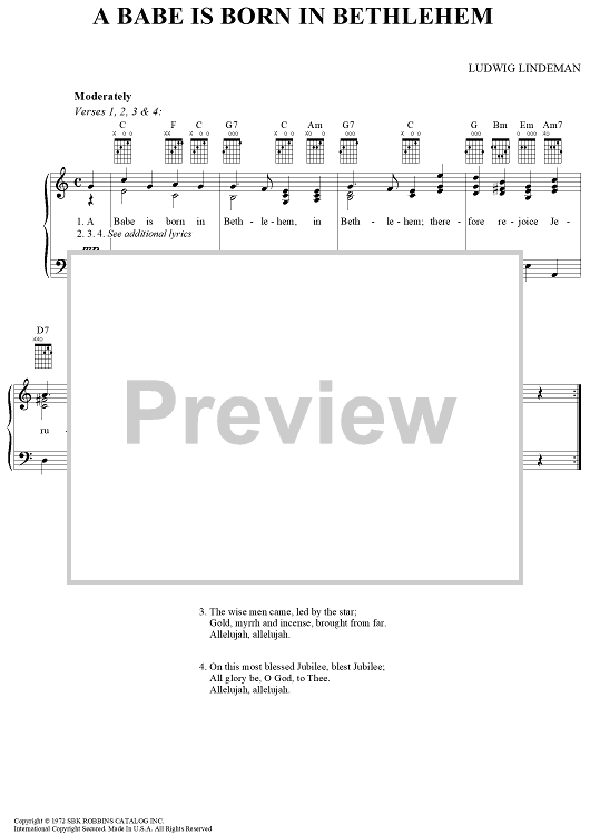 Digital Sheet Music for A Babe Is Born In Bethlehem by Ludwig Lindeman scored for Piano/Vocal/Chords; id:250679