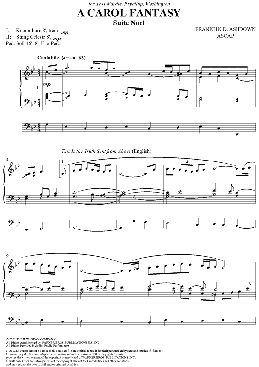 "A Carol Fantasy" Sheet Music by Franklin D. Ashdown